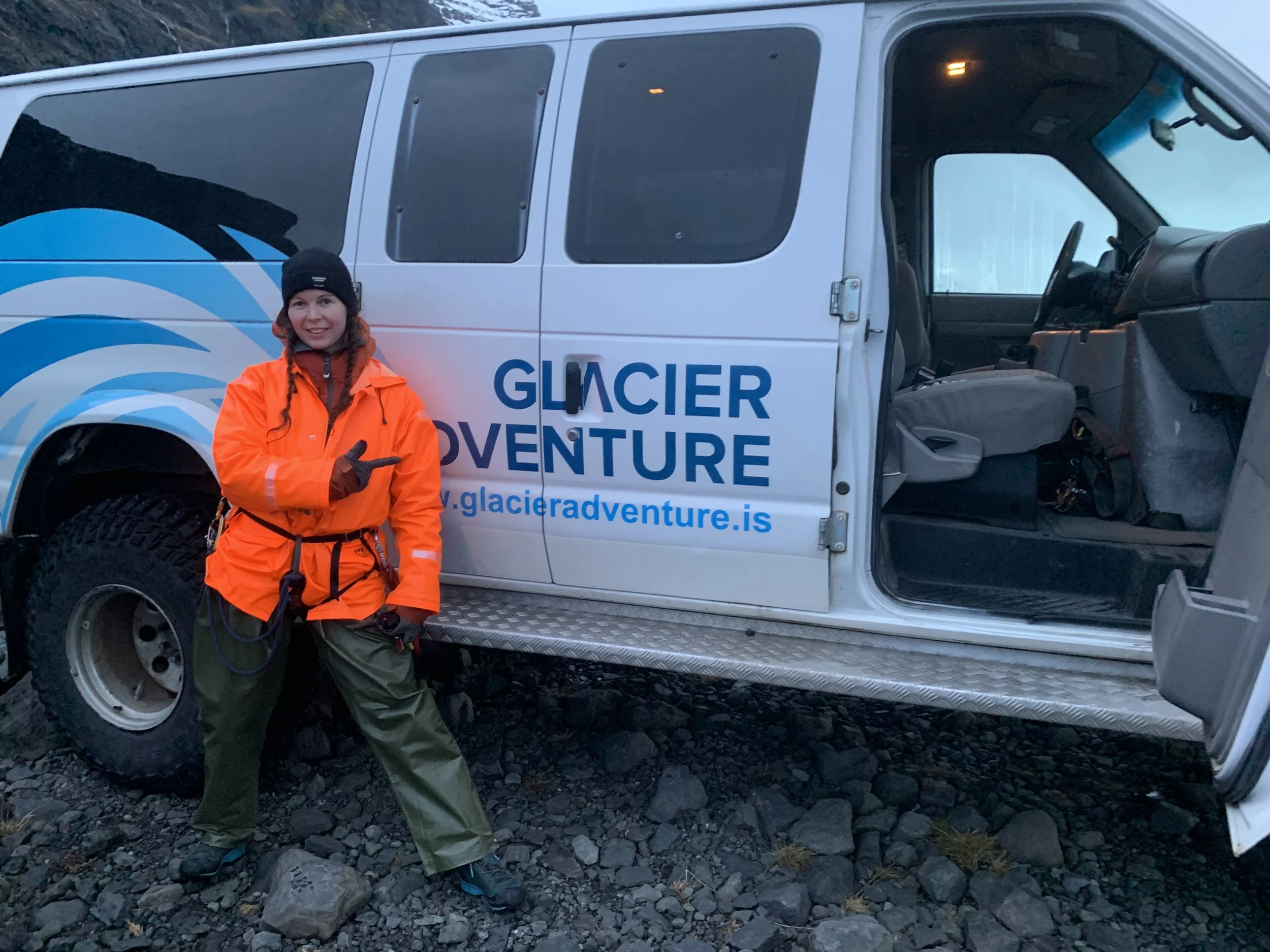 There were only 6 of us in the group - for this kind of hike, 8 is the maximum they will take - and so there was plenty of room in the Glacier Adventure 4x4 super jeep for us all. Žanet had promised us a fun drive and so it proved, as we headed out towards our destination of Breiðamerkurjökull which is one of the outlet glaciers (that look like fingers) at the outer edge of Vatnajökull. After a short spell on the road, we headed off-road towards the glacier, bouncing and lurching wildly as the jeep followed an old farming road called “Þröng”, criss-crossed with ditches, pools and slopes and made its laborious way across the glacial outwash plain. More like a rollercoaster than a road, it’s not a route I would want to ever drive, but Žanet clearly had a whale of a time as she expertly navigated the pitted and rocky route, all the while regaling us with facts about the glacier and even running a fast-paced quiz, awarding points for correct answers about all things glacial and periodically testing us as to whether we had remembered and could pronounce the name Breiðamerkurjökull!